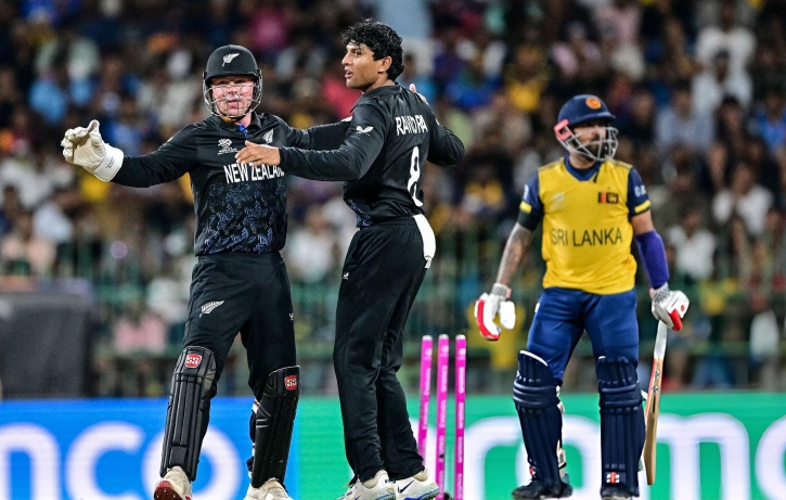 ব্যাটিংয়ে নেমে পঞ্চম ওভারের ভেতর ৩৪ রানে দুই ওপেনারকে হারায় কিউইরা। তৃতীয় উইকেটে রবীন্দ্র ও গ্লেন ফিলিপসের ব্যাটে সেই ধাক্কা সামাল দেয় তারা। দশম ওভারে ফিলিপসকে (১৮) বোল্ড করে ৪১ রানের এই জুটি ভাঙেন দুশমন্ত চামিরা। এরপরই ধস নামে নিউ জিল্যান্ডের ব্যাটিং-অর্ডারে।