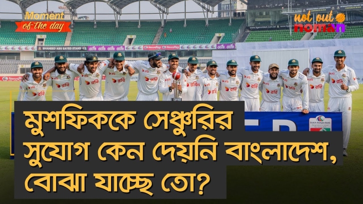 মুশফিককে সেঞ্চুরির সুযোগ কেন দেয়নি বাংলাদেশ, বোঝা যাচ্ছে তো? ২৪ নভেম্বর ২০২৫ মন্তব্য করুন: আরো পড়ুন টি২০ বিশ্বকাপে কতটা কঠিন গ্রুপে বাংলাদেশ? দিনটি হতে পারত দক্ষিণ আফ্রিকার কিন্তু হল শেষ পর্যন্ত কি ভারতেরই? সেঞ্চুরি টেস্টে মুশফিককে জোড়া সেঞ্চুরির সুযোগ কি দিতে পারত না বাংলাদেশ? ২ দিনেই টেস্ট শেষ! সেই ১৯ বল, সৈকতের বিতর্কিত ঘোষণা নাকি হেডের বিস্ফোরক ইনিংসে?