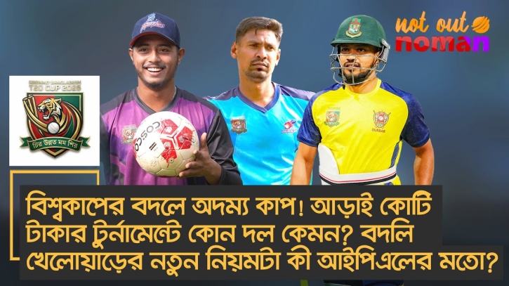 বিশ্বকাপের বদলে অদম্য কাপ! আড়াই কোটি টাকার টুর্নামেন্টে কোন দল কেমন? বদলির নিয়মটা কী আইপিএলের মতো? ৭ ফেব্রুয়ারি ২০২৬ মন্তব্য করুন: আরো পড়ুন সবই থাকবে, সবাই থাকবে; বিশ্বকাপে শুধু বাংলাদেশই থাকবে না! ভন্ডামি আর দ্বিচারিতার ৭/৮টি নমুনা! আইপিএলের মুস্তাফিজ পিএসএলে! ‘ধন্যবাদ পা*কিস্তান’ আর ‘বাংলাদেশীরা আমাদের ভাই’তে কিসের ইঙ্গিত! ০% ক্রিকেট ১০০% রাজনীতি! অথচ পা*ক প্রধানমন্ত্রী কী বলেন; বাংলাদেশের ক্রীড়ামন্ত্রীও গদগদ ধন্যবাদ দেন! আইসিসি ভেঙে নতুন আইসিসি করতে চায় পাকিস্তান! বাংলাদেশের জন্য ফাঁদ!