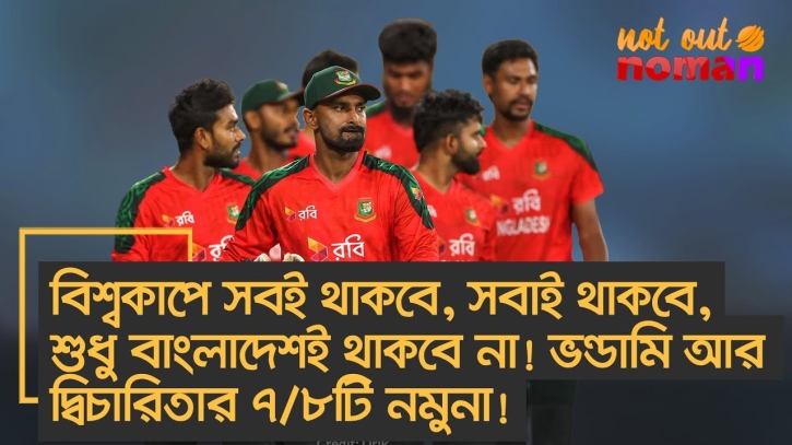 সবই থাকবে, সবাই থাকবে; বিশ্বকাপে শুধু বাংলাদেশই থাকবে না! ভন্ডামি আর দ্বিচারিতার ৭/৮টি নমুনা! ৭ ফেব্রুয়ারি ২০২৬ মন্তব্য করুন: আরো পড়ুন আইপিএলের মুস্তাফিজ পিএসএলে! ‘ধন্যবাদ পা*কিস্তান’ আর ‘বাংলাদেশীরা আমাদের ভাই’তে কিসের ইঙ্গিত! ০% ক্রিকেট ১০০% রাজনীতি! অথচ পা*ক প্রধানমন্ত্রী কী বলেন; বাংলাদেশের ক্রীড়ামন্ত্রীও গদগদ ধন্যবাদ দেন! বিশ্বকাপের বদলে অদম্য কাপ! আড়াই কোটি টাকার টুর্নামেন্টে কোন দল কেমন? বদলির নিয়মটা কী আইপিএলের মতো? আইসিসি ভেঙে নতুন আইসিসি করতে চায় পাকিস্তান! বাংলাদেশের জন্য ফাঁদ!